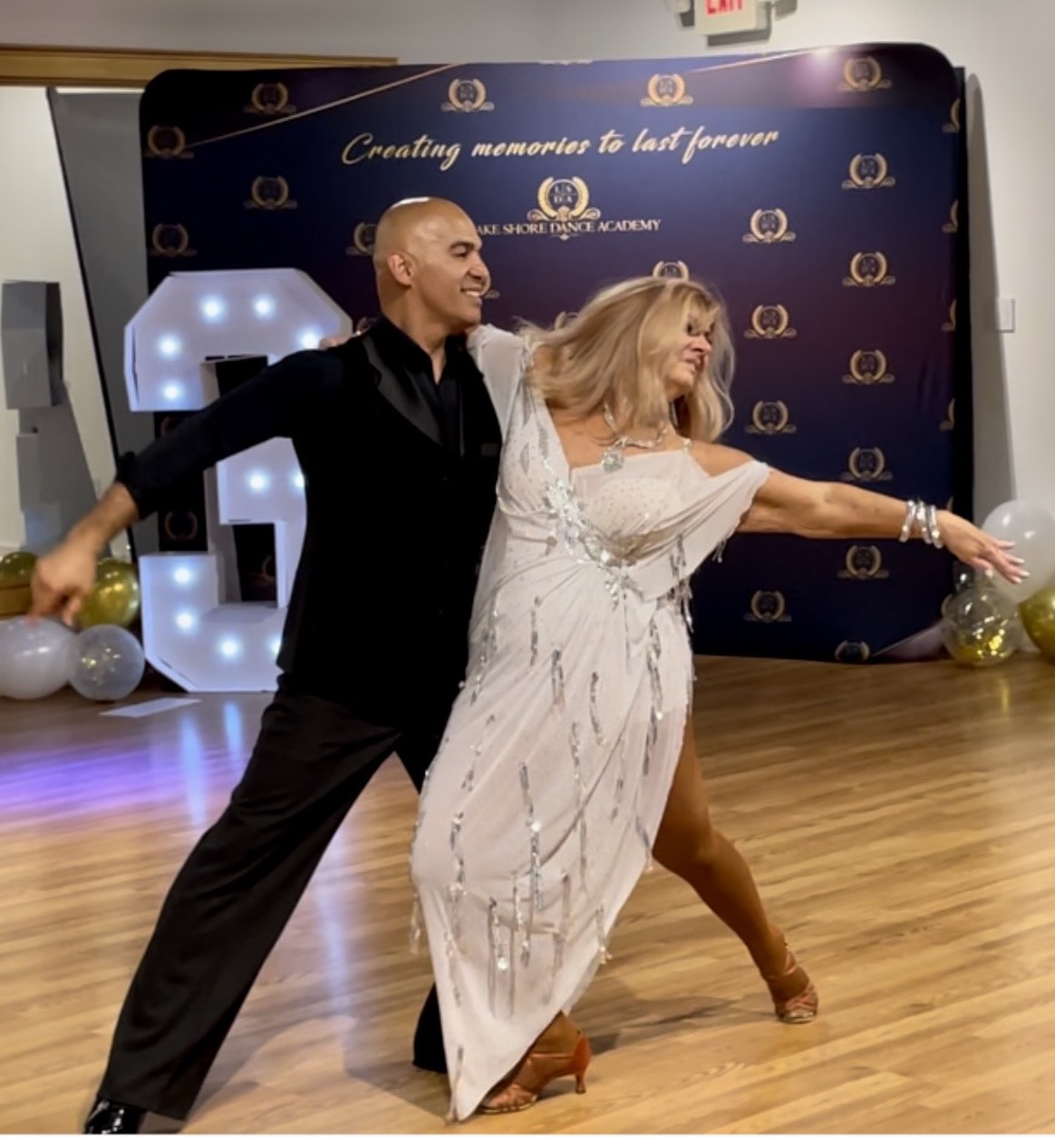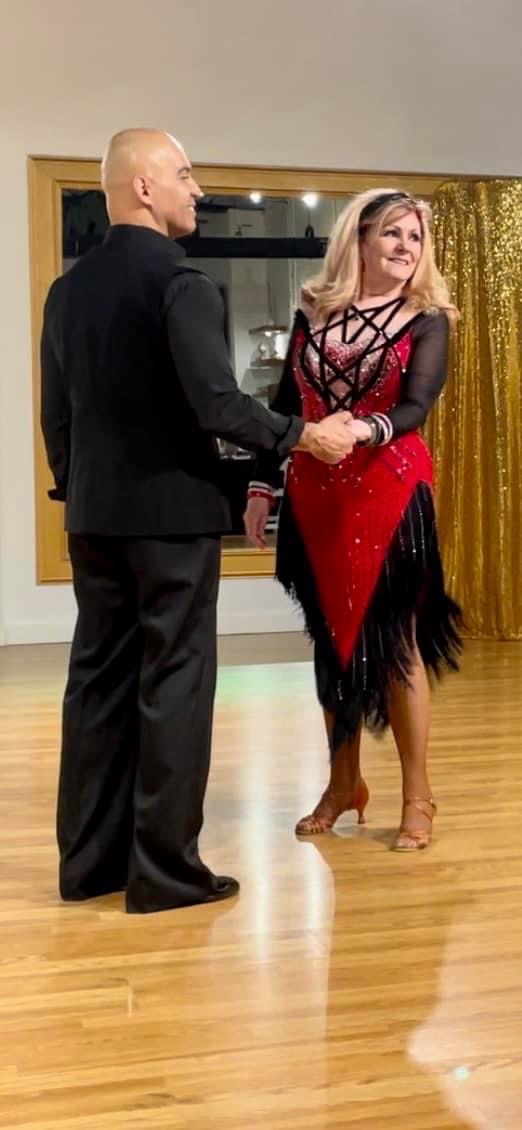 People dance for various reasons my dance journey began during a very low period in my life. I lost my soulmate tragically and my life was turned upside down with grief. Friends encouraged me-to take a dance lesson and for the first time in over a year I started to feel human again. Alex seem to know that Dance was the answer to my sadness and dance soon became the bright spot of my life. I was laughing again and finding joy. It has been 11 years dancing with AlexWe have danced competitively in all four styles. We have danced numerous showcases with some of the best choreography and of course props.