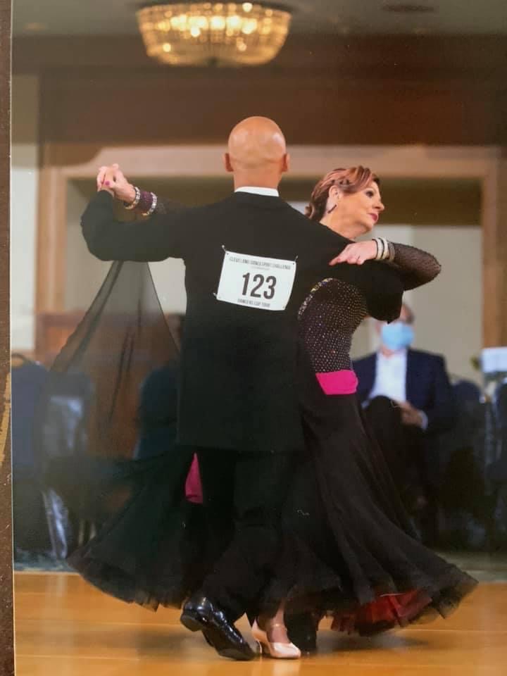 The Dance community has embraced me and has become on a very important part of my life. It is a wonderful community in which I have developed great friendships, sharing in our love of Dance, never did. I think Dance would be my life. My children still shake their heads because seeing me in Ballroom attire is a far cry from the mom who shot baskets in the driveway and coached their soccer teams but here I am competing on the dance floor with all its glitz and glam. It is also been through this journey that I have found a second passion designing and stoning ballroom dresses and helping new students maneuver this part of the sport