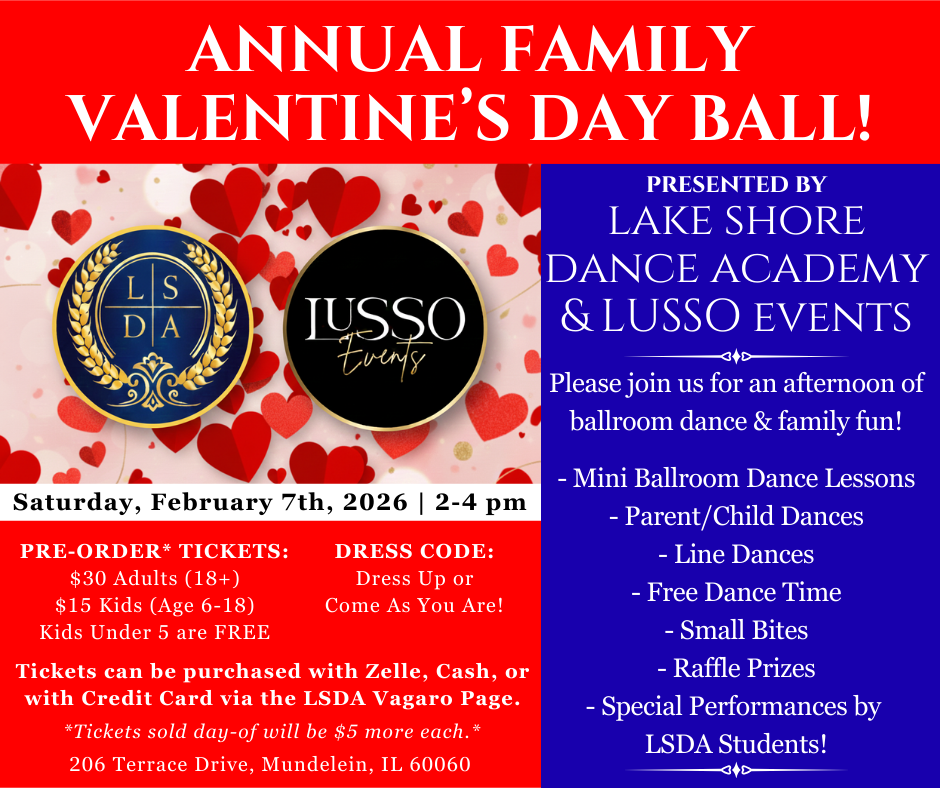 At Lake Shore Dance Academy, our dance parties are open to everyone. No partner is necessary, as our students and instructors greatly enjoy dancing with all those who attend, These practice parties provide a wonderful opportunity to implement everything learned during the private lessons & group classes. If you are a seasoned dancer you will enjoy dancing on our large dance floor to great variety of songs, having a great time playing games and many mor
